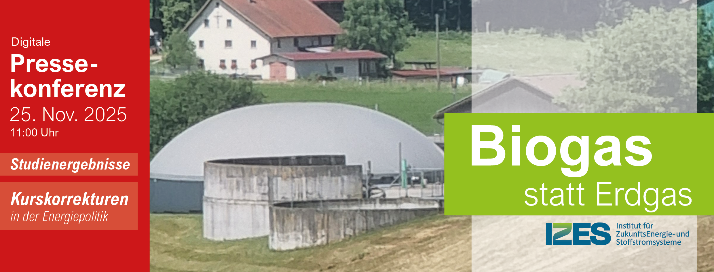 Biogas als Schlüssel zur Defossilisierung ist in den politikleitenden Studien aktuell unterschätzt – zu diesem Ergebnis kommen die Autor*innen des Instituts für Zukunftsenergie- und Stoffstromsysteme gGmbH (IZES) in ihrer vom Fachverband Biogas e.V. in Auftrag gegebene Studie „Zukunftsaussichten der Biogasbranche“, die im Rahmen einer gemeinsamen Pressekonferenz am 25.11.2025 erstmals vorgestellt wird.