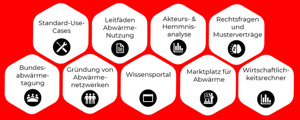 AwaNetz will dem Thema eine bundesweite Bühne geben. Dabei soll es beitragen, bestehende Hemmnisse, unter anderem durch den engen Austausch mit den Marktakteuren und der Politik, zu beseitigen. Damit die Abwärmenutzung zum Mainstream wird, stellt das Konsortium eine Vielzahl an Tools bereit und bringt Wärmebedarf, Wärmequellen und Umsetzende zusammen.